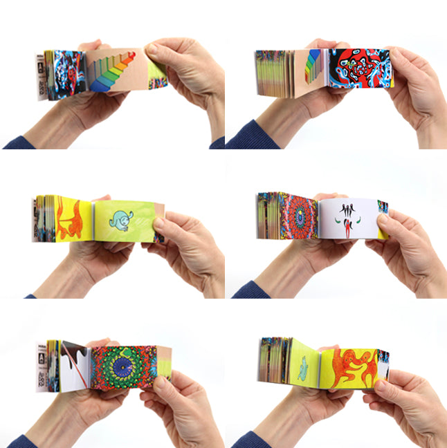 We love creating unique and mind-blowing flipbook editions for all ages, both custom creations and publications for our own catalog. Our goal: to reinvent the 150-year-old format and turn it up a notch, enhancing it with optical illusions, interactive features and augmented reality.