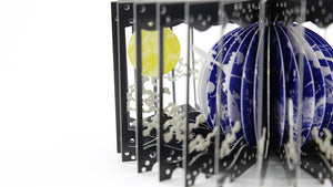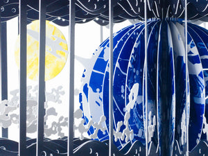 Yusuke Oono, nacido en Alemania y formado como arquitecto, ha diseñado este sorprendente giro del libro pop-up. Como sugiere su título, al desplegar este pequeño libro de forma circular se obtiene una escena panorámica de 360 grados de siluetas superpuestas. En esta nueva edición, podemos sumergirnos al fascinante planeta azul que nos alberga, orbitado en su ronda perpetua por su amiga, la Luna.Cada página, de intrincado diseño, revela un nuevo secreto: una nave espacial, un satélite... ¿y quizá incluso un ovni?