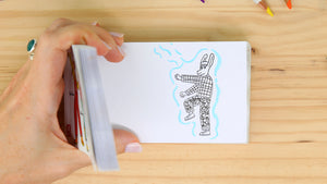 FUNKY es un flipbook interactivo que incluye 6 animaciones coloreables y 240 pegatinas preanimadas, para crear películas animadas de stop-motion.