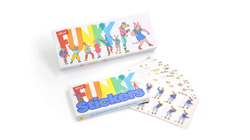 El set de pegatinas FUNKY es una novedad de Flipboku y un nuevo enfoque de la animación: utilízalas para crear tus propias películas de stop-motion mientras aprendes los principios de la animación y cómo se hacen las películas animadas de forma divertida.