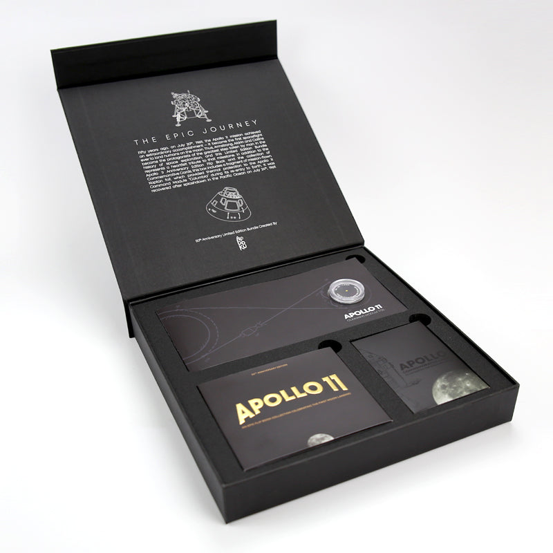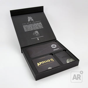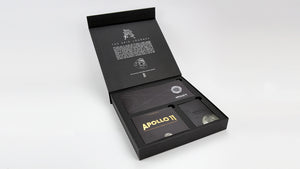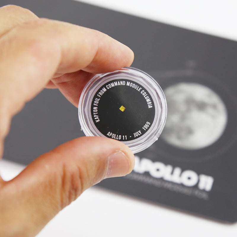 Esta singular edición limitada es un paquete exclusivo que incluye un fragmento real de la película de Kapton que protegió el módulo de mando Columbia durante su regreso a la Tierra. La pieza única se conserva en un pequeño recipiente acrílico conmemorativo que viene numerado individualmente y con tu nombre. Una pieza de coleccionista exclusiva para quienes deseen tener en sus manos un auténtico pedazo de la historia de la humanidad.