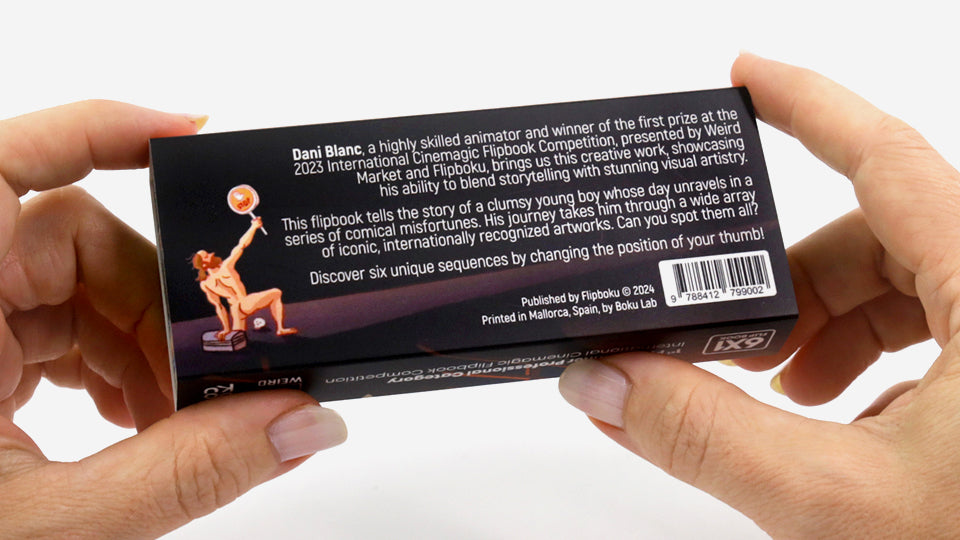 In this playful flipbook, Dani Blanc, first-place winner of the 2023 International Cinemagic Flipbook Competition presented by Weird Market and Flipboku, takes you on a wild journey through six comical sequences. Watch as a clumsy young boy’s day spirals into a series of hilarious misfortunes, all while he encounters iconic, internationally recognized artworks along the way.